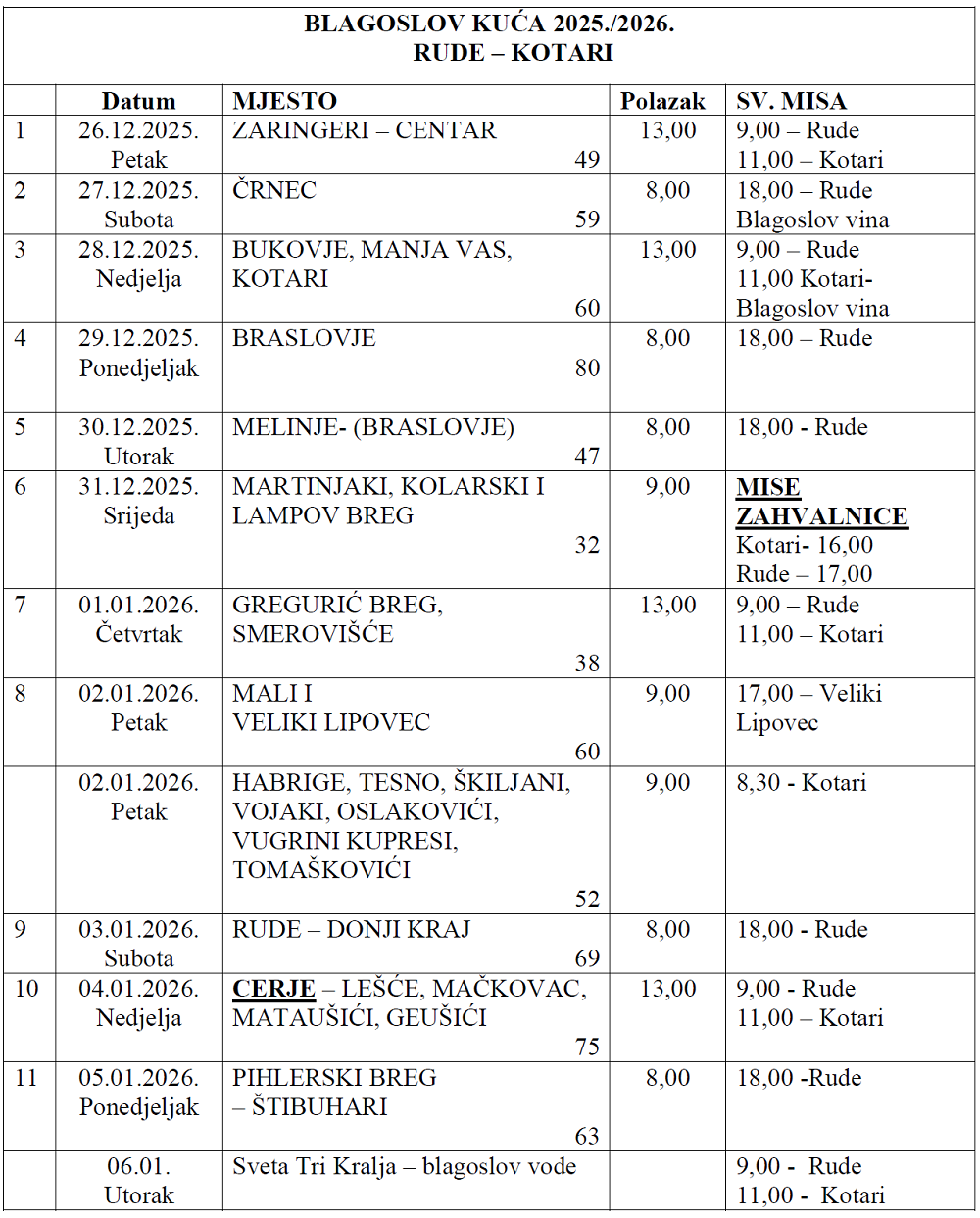 Za sve detaljne informacije obratite se u župni ured Rude ili na broj telefona