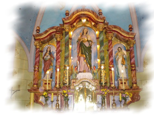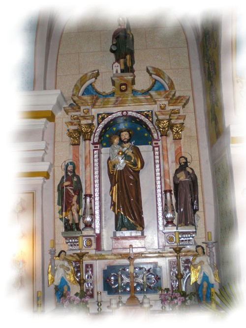 Prvi oltar sv. Josipa, od drva, s kipovima sv. Josipa, sv. Antuna pustinjaka, sv. Roka i sv. Florijana na vrhu.
