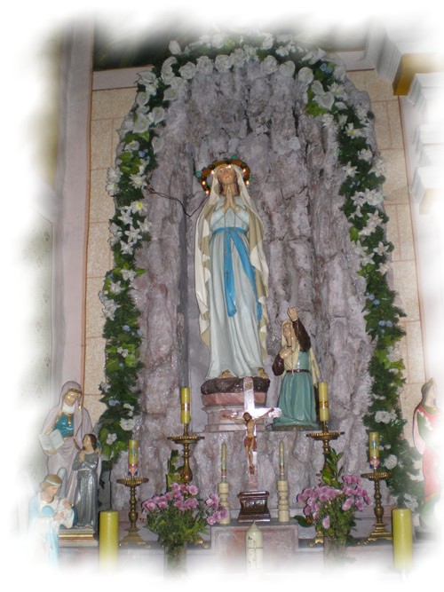 Drugi oltar, Majke božje Lurdske, je drveni s kipom i kipovima sv. Bernardice i sv. Ane.